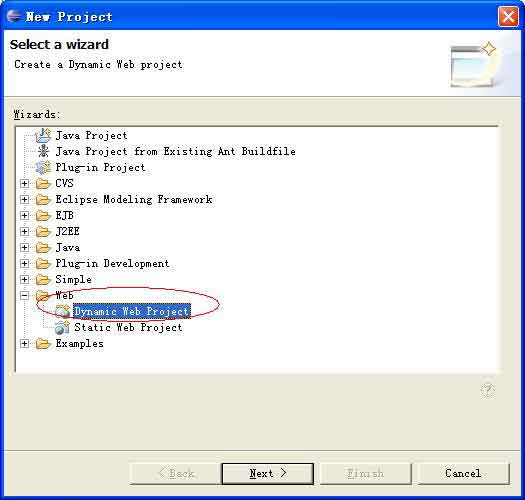 (说明:如果是以前的版本,在new的时候可能找不到dynamic web