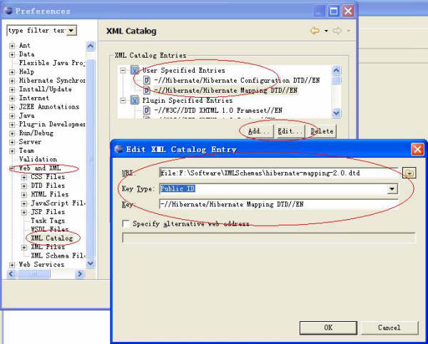 也可以把常用的xml文件的定义文件配置在xmlcatalog里边,