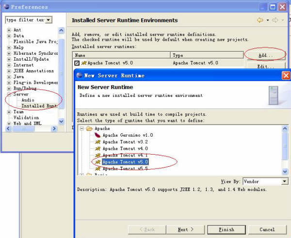 这里介绍的主要是jdk5.0b4 + eclipse3.1 + wtp0.7m5环境下的配置和开发,
