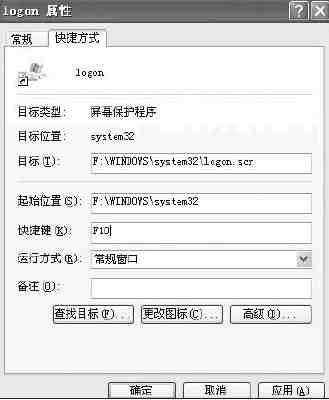 图1为快捷方式设定快捷键 设置完成后,当我们离开计算机时只需按一下F10键,屏幕保护程序就立即启动了。您不妨也试一试。