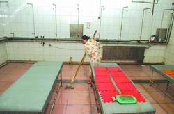 邹春兰在清扫浴池,这是她每天都要做的工作之一
