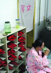 客人不多的时候,邹春兰会坐在浴室外的凳子上休息一下