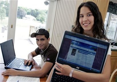MyYearbook.com网站的创建及发展略谈哥哥David Cook(左),17岁(本周四,即,6月22日,才满18岁);妹妹Catherine Cook(右),16岁,本周三(6月21日)在家中和自己的PC机在一起。