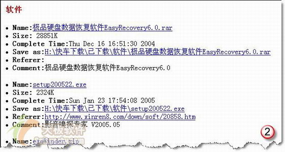 在网际快车(以下的介绍均以网际快车简体中文1.65版为例进行)中可以分类管理文件,比如,我们可以把程序文件下载到“软件”类别中,把音频文件下载到“MP3”类别中。网际快车的分类及分类中条目的信息(主要包括下载文件的文件名、大小、完成时间、下载文件在磁盘上的保存路径及下载文件的引用页面)保存在一个数据库文件中,在默认情况下,网际快车打开的是安装目录下的文件名为“default.jcd”的数据库,我们可以打开其它数据库,也可以新建自己的数据库,还可以查看数据库中保存的全部或部分的下载文件的信息。在菜单栏选择“文件→输出下载信息”,打开“输出已下载文件信息”对话框,如图1所示,选择一个分类(可以选择“包含子类别”复选框),然后再选择一个输出文件的类型及样式,最后单击“输出”我们就可以输出选定的类别中包含的下载文件信息了。如图2所示,这是我使用“HTML”输出文件类型“Normal”样式输出的当前数据库中“软件”类别中包含的部分已下载文件的信息。