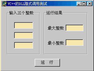 1.用VC++6.0建立动态链接库MaxMin.DLL 第一步:启动VC++6.0,选择“File/New/MFC AppWizzard(Dll)”,工程名设为“MaxMin”,按“确定”钮后,选择“Regular DLL Using shared MFC DLL”,按“Finish”钮后,即创造了一个DLL的框架工程。 第二步:选择“File/New”,在出现的对话框中选择“C/C++ Header File”,在文件名处输入“MyDLL”,按“确定”钮,即创建了一个空的头文件“MyDLL.h”。在该文件中输入以下两行内容: extern "C" _declspec(dllexport) int Min1(int x,int y,int z); extern "C" _declspec(dllexport) int Max1(int x,int y,int z); 选择“File/Save”保存该文件的内容。 第三步:选择“File/New”,在出现的对话框中选择“C/C++ Source File”, 在文件名处输入“MyDLL”,按“确定”钮,即创建了一个空的源文件“MyDLL.cpp”。在该文件中输入以下内容: #include "stdafx.h" #include "MyDll.h" extern "C" __declspec(dllexport) int Min1(int x,int y,int z) { if ((x<=y) & (x<=z)) return x; else if ((y<=x) & (y<=z)) return y; else return z; /*找出x,y,z中的最小整数*/ } extern "C" __declspec(dllexport) int Max1(int x,int y,int z) { if ((x>=y) & (x>=z)) return x; else if ((y>=x) & (y>=z)) return y; else return z; /*找出x,y,z中的最大整数*/ } 选择“File/Save”保存该文件的内容。 第四步:按下运行图标“!”,即生成了MyDLL.DLL(在当前工程目录的DEBUG子目录下)。 2.用Delphi编写调用MaxMin.DLL的测试程序 调用动态链接库有两种方法,即隐式调用和显式调用。 (1)隐式调用 第一步:启动Delphi,选择“New Application”,生成一个空的应用程序,在Form的“Name”属性处输入“TestVcDLLForm”,Caption属性处输入“VC++的DLL隐式调用测试”,在Form中放入控件如表1所示(其中所有的Edit控件的“Text”属性均设为空):