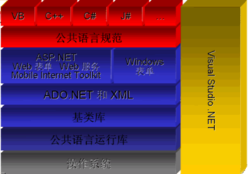 .NET框架提供统一的编程模式:不论什么语言和编程模式都是用一样的API,结构下图所示。