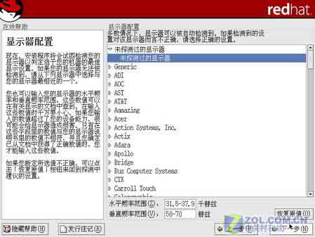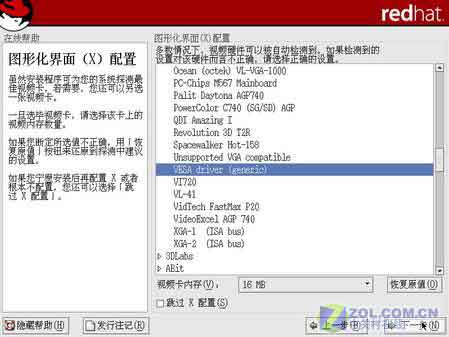 配置显卡型号**************如图23所示******。正常情况下,系统会自动识别显卡型号,直接单击下一步就可以。如果你的显卡并不被Linux支持,那么可以选择兼容的类型。稍候安装新的显卡驱动程序。