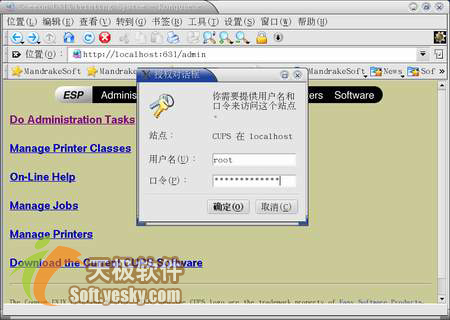 2.通过浏览器直接连接到CUPS的Web控制界面:http://localhost:631/ ,出于安全此时要输入账号名称和口令,见图-3.