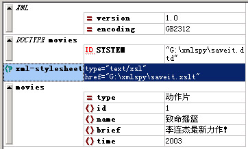 XML Spy是Icon Information System开发的支持XML,XSL,XSLT,DTD,Schema等等多种文件格式的编辑器。它可以将XML展示为完美的树型结构,可以方便的使用各种HTML/XML/XSLT标记,使用它可以大大节约我们的开发时间,不必把大量的时间浪费在代码的输入上。下面我们通过一个存储电影信息的实例来学习一下XML Spy的使用方法。