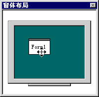 “窗体布局窗口”:调整程序运行时,程序窗体在屏幕中的初始位置,把鼠标移到左图屏幕中的窗体上,这时鼠标会变成移动形状,拖动窗体,就设置好了运行时此窗体的位置。