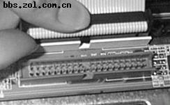 接下来是安装显卡。现在的显卡一般都是AGP卡,所以只要插到相应的AGP插槽就行了,如为PCI显卡则把它插到PCI插槽上。